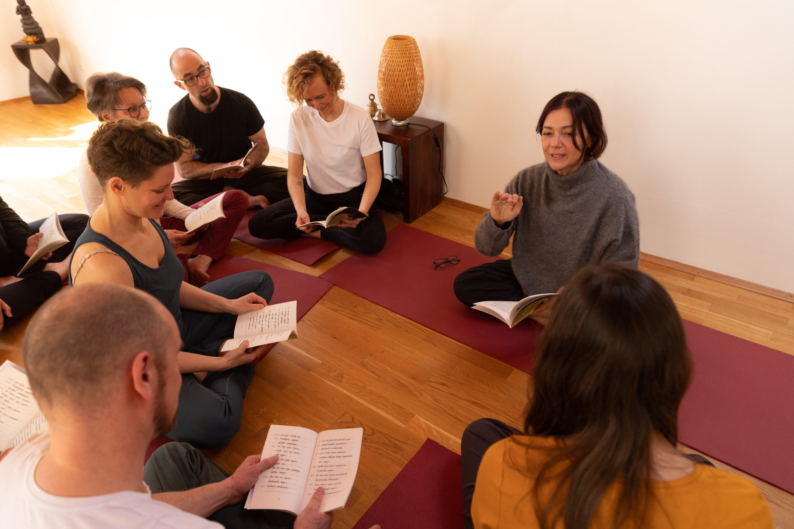 Seit 2008 bin ich als Yogalehrerin BDY/EYU (Berufsverband der Yogalehrenden in Deutschland / Europäische Yoga Union) zertifiziert. Mein Verständnis von Yoga vertiefe ich seit 2010 durch die Lehren von Dr. Shrikrishna Bhushan Tengshe, insbesondere im Bereich Pranayama und Meditation. Meine Liebe zu alten Texten und Sprachen hat mich zum Sanskrit geführt – und weiter zur Praxis des Vedic Chant, der heute ein wesentlicher Teil meines persönlichen Weges und meines Unterrichts ist.